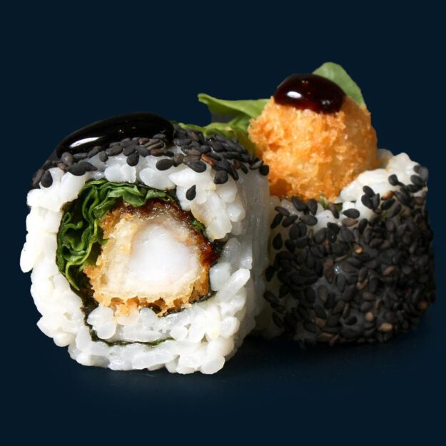 frittierte Garnele, Rucola, schwarzer Sesam mit Teriyaki Sauce 10.3 €