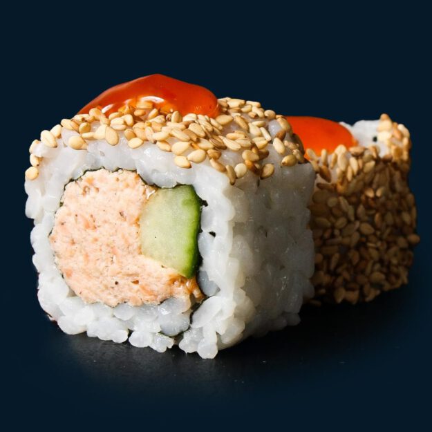 Thunfischcreme (aus gekochtem Thunfisch), Avocado, frischer Schnittlauch, schwarzer Sesam mit hausgemachter Spicy Mayo 9.9 €